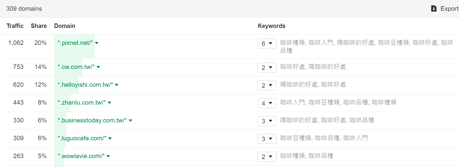 如果你要為你的網站尋找內容主題,第一步需要確認誰是你的競爭對手。最簡單方法是使用關鍵字研究工具,查詢那些你想要使用的關鍵字,並看哪一些網站從中獲得最多的流量。!