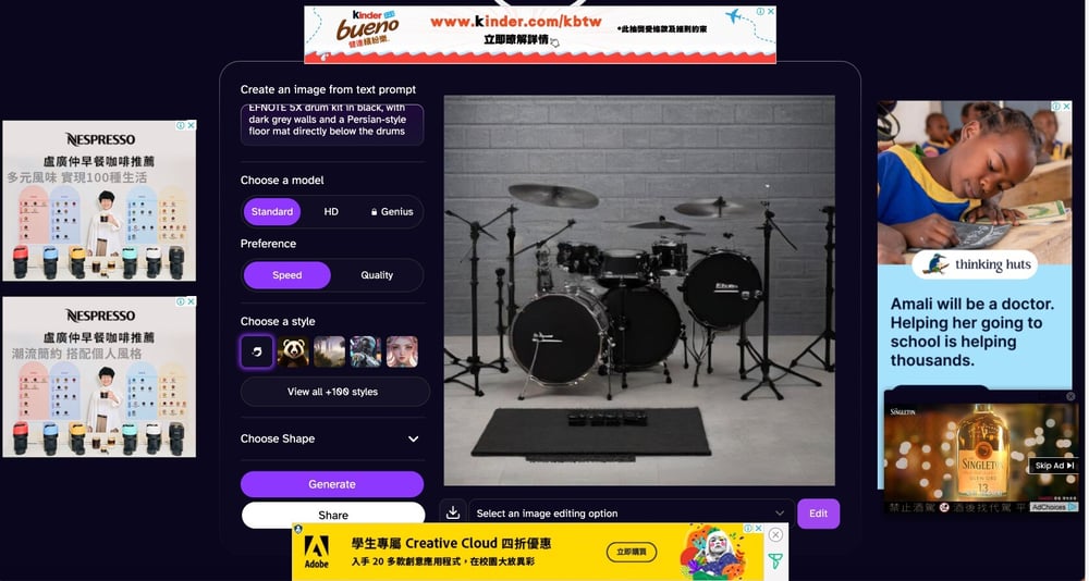 使用體驗心得:DeepAI 適合一般使用者和對 AI 繪圖感興趣的初學者。它的功能相對豐富,能生成多種風格的圖片,操作介面廣告超多,且免費試用額度少。