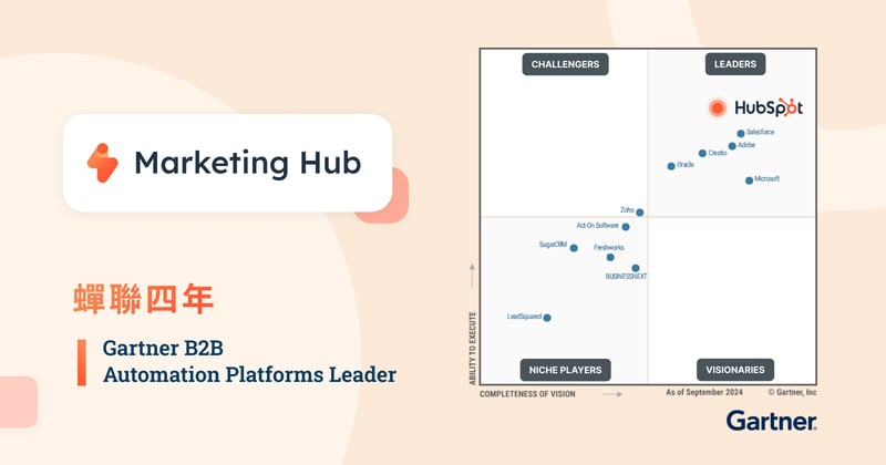 連續四年稱霸 ! HubSpot 蟬聯 Gartner® 魔力象限 B2B 行銷自動化領導品牌